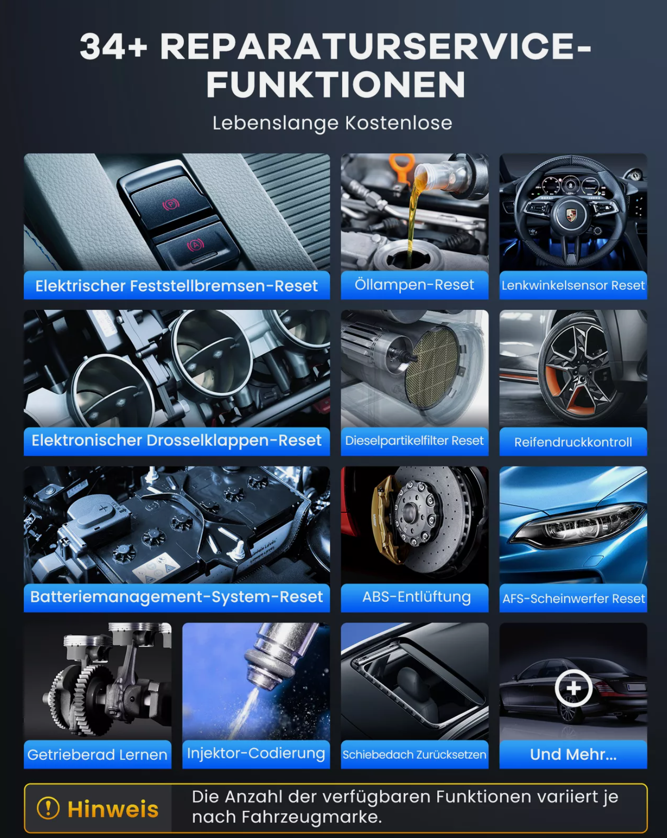 Unterstützt 34+ Wartungsfunktionen*