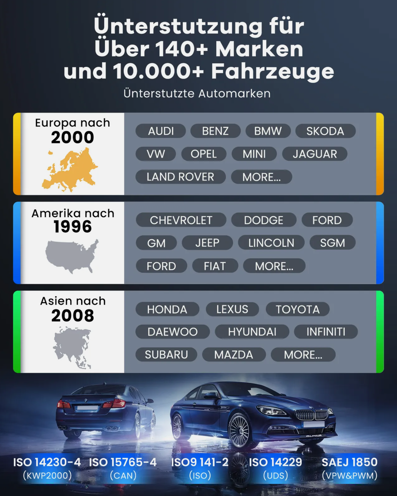 · Breite Fahrzeugabdeckung. Decken Sie bis zu 109+ große Fahrzeughersteller ab, und weitere Modelle werden aktualisiert