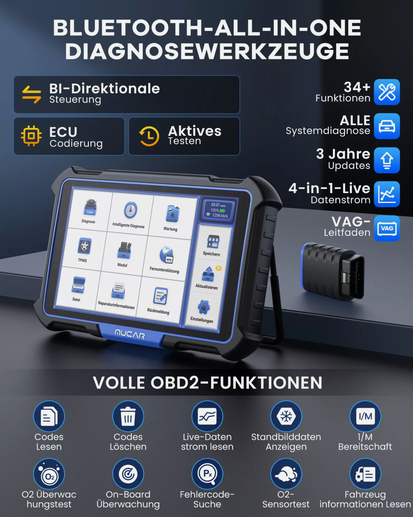 · Unterstützt 34+ Wartungsfunktionen